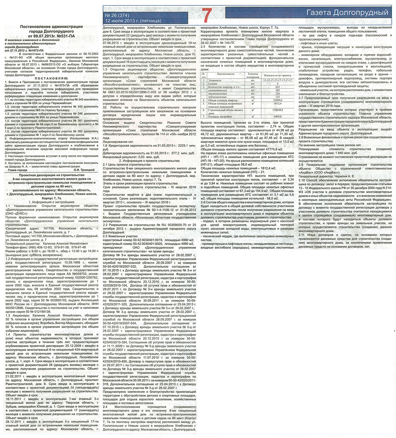 Новый жилой комплекс комфорт-класса, расположенный по адресу Московская область, г. Долгопрудный, микрорайон Хлебниково, Новое шоссе, корпус 7, 7А, представляет собой 8-ми секционный многоэтажный дом переменной этажности со встроено-пристроенными нежилыми помещениями и детским садом на 80 мест. Проектом предусмотрено озеленение и благоустройство прилегающей территории и с обустройством детских и спортивных площадок.